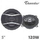 5“ (13см) Трилентови автомобилни говорители THUNDER, Съпротивление 4Оhm, Максимална мощност 120W, Честотна лента: 65Hz-20KHz, Чувствителност 88dB, Черен шприцован полипропиленов конус, Магнит-5.4Oz, Черна гумена гънка, Решетки и кабели за монтаж